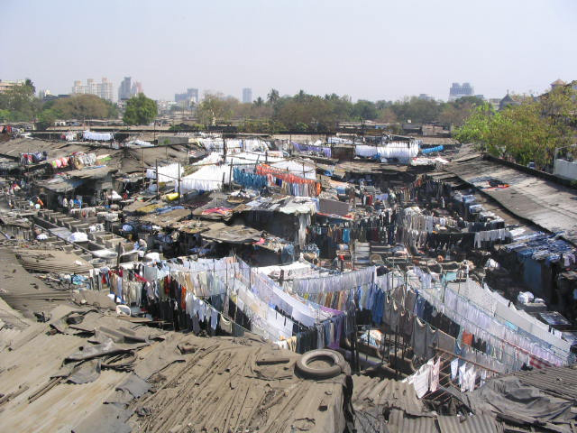 Henry took me to a cybercafé near the Eros cinema where I wrote my first blog entry in India, then on a train to the Dhobi Ghats where thousands of people work, washing clothes in what's probably fairly manky water, then to Haji Ali's durgah. Don't go here if you can't cope with seeing beggars who have had hands or feet amputated who rock and call out to you for alms. I had a pleasant conversation with a man whose son is reading for an MPhil in genetics at Birmingham University