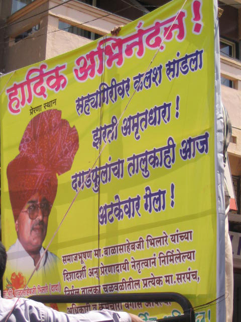 After another patchy sleep, I finally surfaced at 10.45 and charged to where I'd arranged to meet Virendra, arriving just after 11. He wasn't there and so I waited, while getting more Marathi 'lessons', for about half an hour. I'm still in two minds about this - I was a couple of minutes late and so broke our agreement and feel I owe him something. However, I'd have expected him to wait at least 5 minutes before giving up on me, I called his cellphone several times without success and I didn't get any service from him, so I certainly don't feel I owe him anything like Rs300 - maybe a glass of chai, over which we could chat and remake the arrangement. (I didn't get the chance because I never saw him again.)