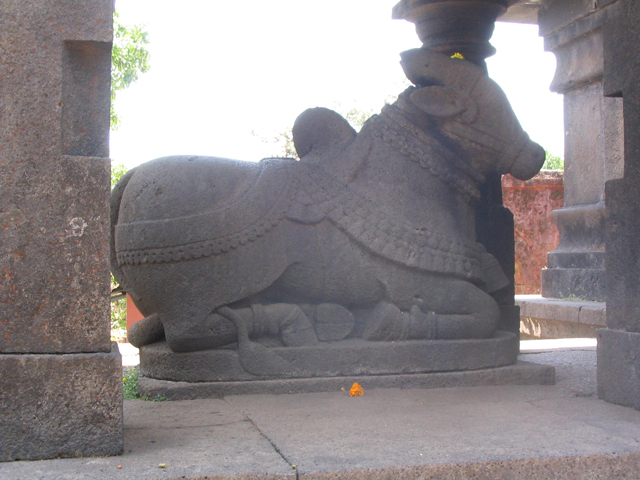 There are two temples at Old Mahabaleshwar, one of which is built over the spring which gives rise to (or at least is used to celebrate) 5 rivers. (Mahabaleshwar and surrounding hamlets appear to be on a peak from which various spurs and ridges fall away. I'll scan my map when I update my photo-website so you can see what I'm on about.) The water has been channeled to come out of a carved bull's mouth, into a sacred bathing pool, then to flow through five neat channels, each in a niche with a statue/altar to an appropriate god, on its way to the rivers.