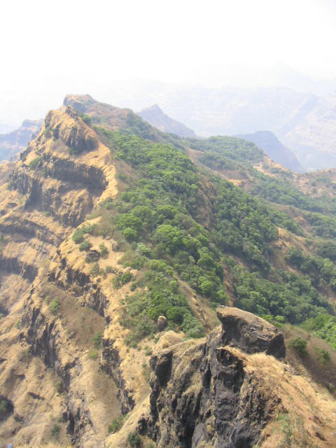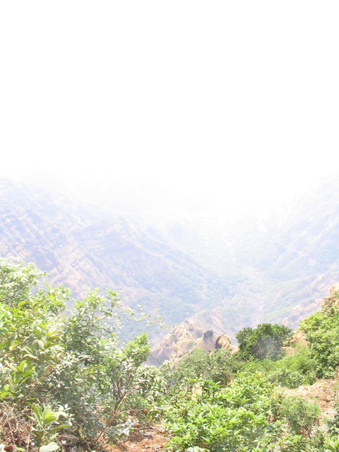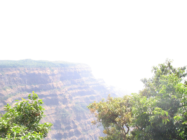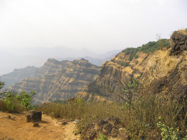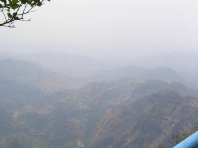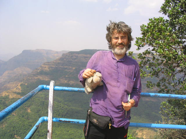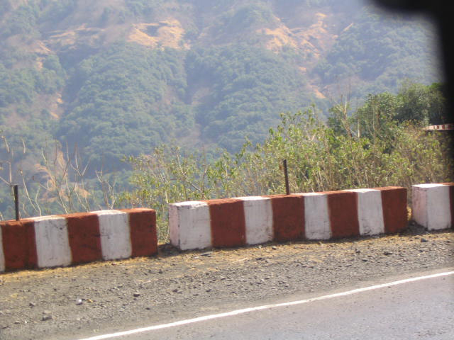 I couldn't face any more Marathi martyrdom and so decided to walk to a viewpoint called Arthur's Seat, about 12km from Mahabaleshwar. (Constantly being bothered by taxi and autorickshaw drivers had turned me against them.) I'd got maybe half a mile down the road and realized that I was getting quite warm when two blokes in a wee three-wheeler van overtook me and then stopped to ask me where I was going. They insisted on taking me halfway, to Old Mahabaleshwar, to where they were delivering a load of laundry at a posh hotel. So we pootled off, me wondering whether the van would turn turtle under our combined weight or whether the engine would simply refuse to get all thee of us up the slopes on this road.