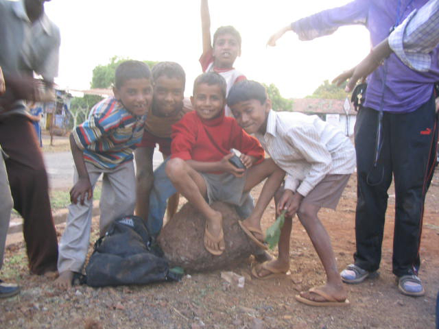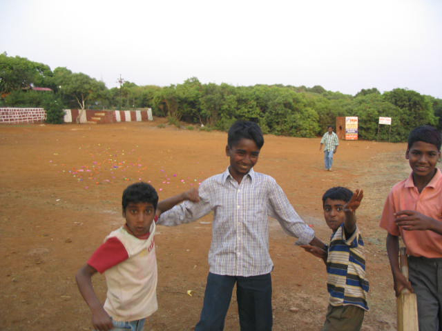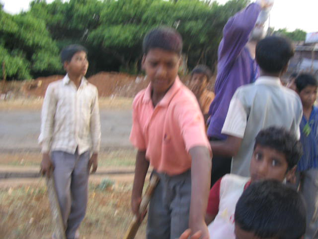 After the hall closed (at 10.30!), I returned to my hotel but played a bit of football in the street with some local lads who asked me to join them. They were all apparently under 13 and one (Shubham) is the son of the man who runs the phonebooth I'd used quite often. I've also played a version of hopscotch with these lads (Rohit, Pratik, Pamesh, Dhananjay, Kaitan, Shubham, Yashodam, Ashitish and Daud) a couple of times. You throw a stone into a scoring area chalked onto the path, then hop to it, then through the numbered sections to your stone, then hop-kick it out of that area. If you succeed, you get the number of points in that area and then get another go. However, if you don't get your stone into a numbered area (or if it lands on any of the chalked lines) or if you put your foot down, take more than one hop between numbered areas, land on any chalked lines or fail to hop-kick your stone completely out of the scoring area, your turn ends.
