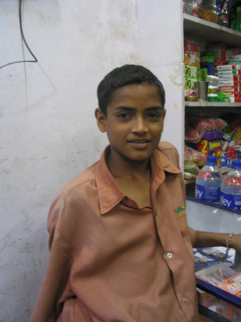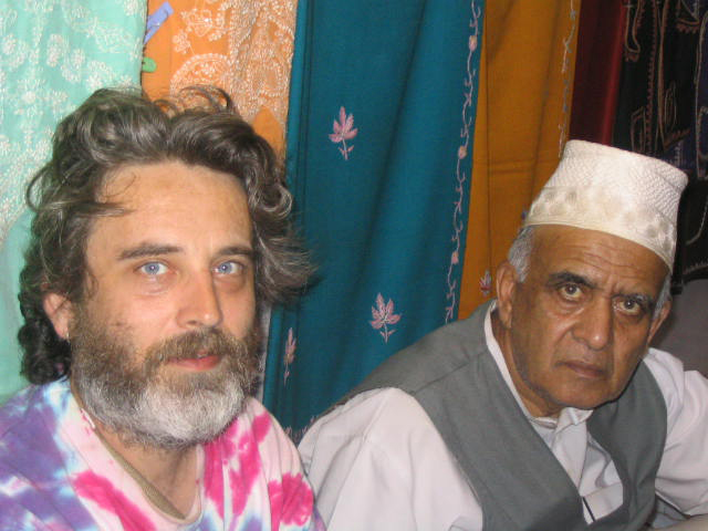 Decide to do some souvenir shopping so I start checking prices in the shops on the main street. Most places sell kurtas (long, loose, typically 'islamic style') blouses but I'm noting prices in my diary when a young bloke (Wahid) approaches me to ask me to come and talk with his uncle. Mr Shah has seen me writing in my diary several times and is curious about what I'm writing. So I tell him it's my diary and we talk about what I'm doing here and what he does. He runs a small shop called the Kashmiri Arts Palace, selling clothing and other textiles he buys in his native area (near Srinagar, Kashmir's capital) and sells here.