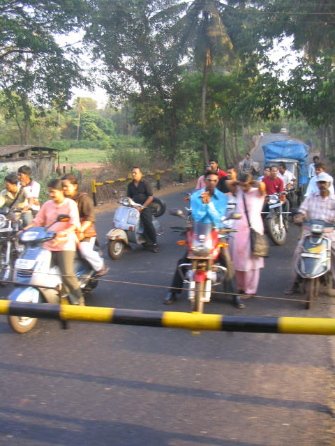 There, a local shop keeper told me that a train would arrive before the bus and get me to Margao in 30 minutes. This sounded much more like it! I like Indian trains, especially the cool breezes and views from the open doors. Even better, my ticket cost Rs8. The train was all second-class (wooden slatted seats) but for 30 minutes, who cares? At one station, theree women who had been carrying huge bundles of wood on their heads got on and stood at the end of the carriage, next to the toilets. A passenger moaned at them a lot - I couldn't see what they were doing wrong but I think it may have been a caste thing. Also, a police-git just hissed at them to get out of his way so he could use the toilet. Cowardice got the better part of me telling him that he could be civil, even if he did wear a uniform.