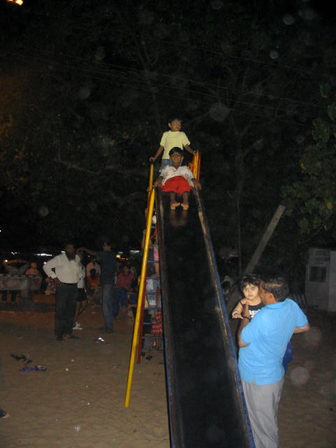 That evening, Suriya, Bobby, Dhanush, Gautami, Laxmi (Suriya's friend) and I went to the beach. Dhanush and Gautami played on the swings and slides while Suriya, Laxmi and I walked on the beach and I had a brief swim in the pounding surf. It seemed the sight of a European mingling with an Indian family was boggling and outraging some people. I can understand curiosity and surprise but outrage? The only answer I have is a bunch of expletives: such opinions are in themselves too worthless to even begin to take seriously. However, I was concerned that there might be ill effects on Suriya and family once I'm gone - she seems to be well-known and well-liked here but my antennae were quivering.