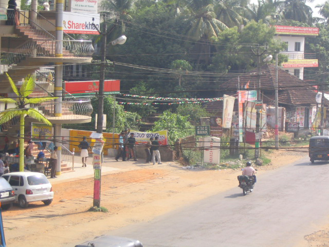 This morning's grotty mood has almost evaporated. My first drafts about last week are complete. Also some lads outside a nearby shopping centre were letting off some fire-crackers earlier. All day, loudspeaker vans have been prowling up and down Ottapalam's main drag and finally a parade has passed by.