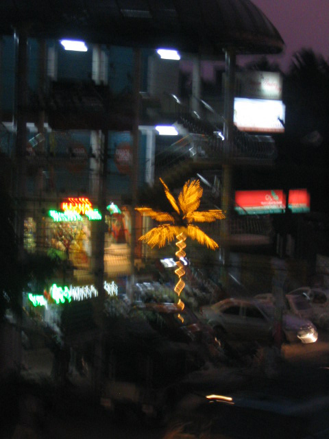Meanwhile the plastic coconut tree outside the posh shopping centre is as bright tonight as it has been every other night I've seen it.