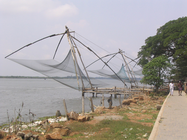 The first place I wanted to see was the 'chinese fishing nets'. Huge square frames of net are raised and lowered into the water, scooping up fish (apparently - they weren't in action when I arrived). Seems a bit rough on the fish but they look amazing.