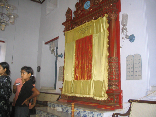 I got to Bazar Road and walked south to get to the 'dutch palace' (which looked so unappealing I walked on) and then to Jew Town. It has, I believe, the oldest extant synagogue in India. I didn't have the 2 rupees that would have bought me an entrace ticket (just several 100 rupee notes) but the ticket collecter let me in anyway: it's beautiful!