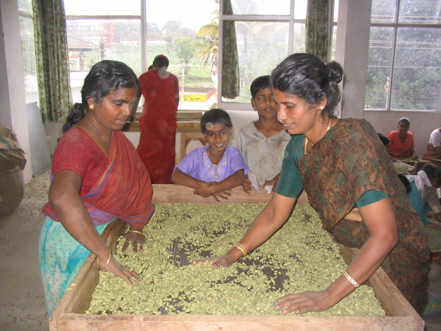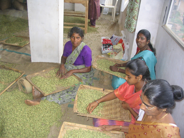 However, it seems that today was (also) the day Ajeesh took me to the factory where women sort and grade cardamom seeds. The scent was utterly heady and heavenly. The photos show the process, I hope.