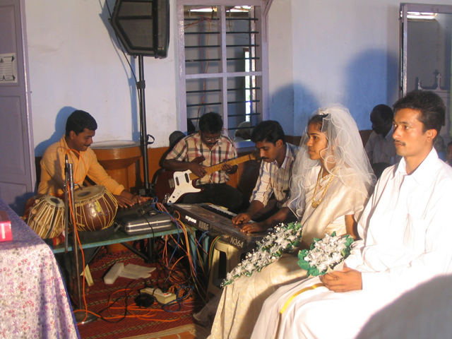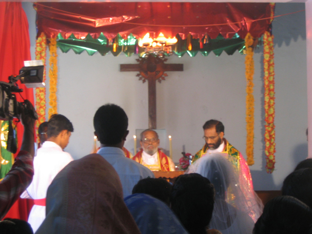 (As I write this web-page, I recall how long the ceremony went on and that Ajeesh and I escaped to a nearby chai-shop/café so that we could indulge ourselves in paan and other things we couldn't do in church. We went back in time for the meal: over 360 guests eating in 2 sitting!)s