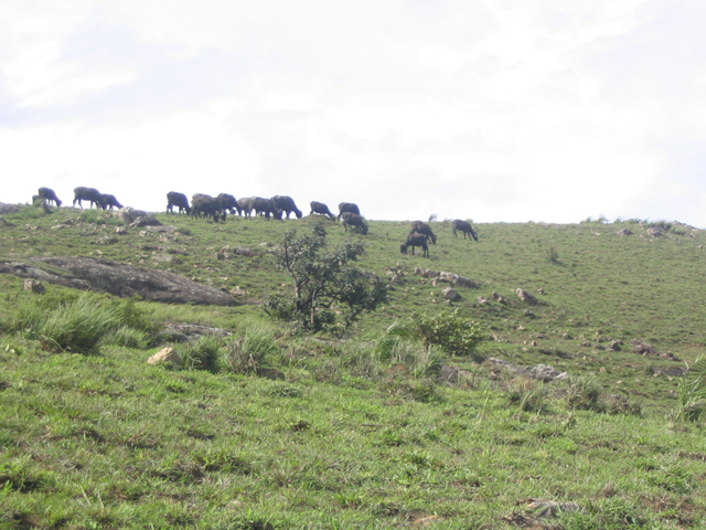 The bundh (strike and total stoppage of business) called by the BJP (to protest the nation-wide hike in petrol prices) seemed total within its parameters. Almost all shops and godowns were closed: a toddy shop was open (if you knew the right knock on the shuttered door and were quick to sneak in) as were vegetable and chai/general stores in the hillside 'suburbs'. Nedumkandam town was almost supernaturally quiet - the only noise was a fish-seller's horn and some quiet conversation. Having shown me this annoyance (it pissed me off, because it won't hurt the oil companies*), Ajeesh and his journalist friend Anish took me on a walk to try to see elephants on the Kerala/Tamil Nadu border.