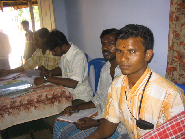 The meeting opened with two prayers. Then the minutes of the last meeting were read out and the president asked each member if he concurred. (I don't recall any women being in this meeting.) Also, members signed an attendance register. Some letters from members were passed to the office-holders and money was passed to the secretary. (I was told that each member contributes Rs20 at each meeting. In four years, this group has raised Rs400,000.) Members stood up to speak, after being invited to speak in turn by the chairman. Then there was some general discussion (I couldn't tell what it was about) followed by a Random Bozo photo-call.
