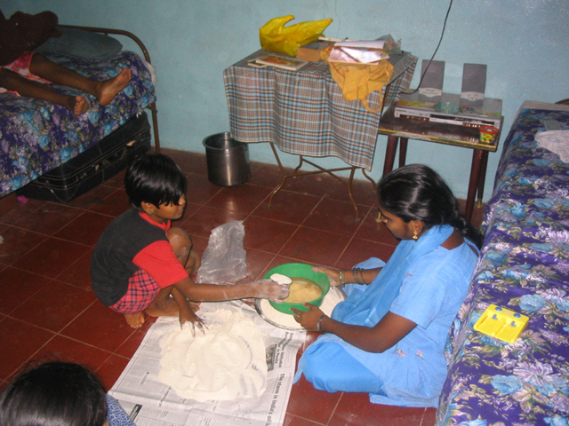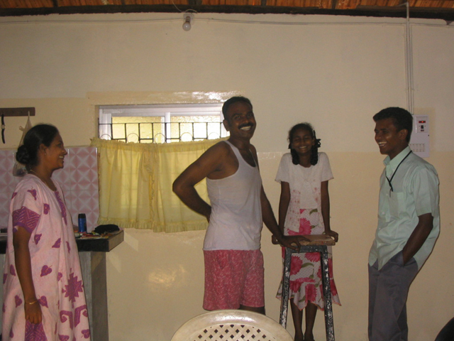 He told us that no breakfast was ready for us. I could smell the alcohol on his breath. We agreed to reconvene at 11·30. Ajeesh and I walked on the beach and then went to meet Raj and the others. We ate lunch in the room Raju and Margaret Mary share, next to the room Ravi, Bobby, Gautami and Dhanush share. I think these are rented from the unpleasant Mr Vinson.