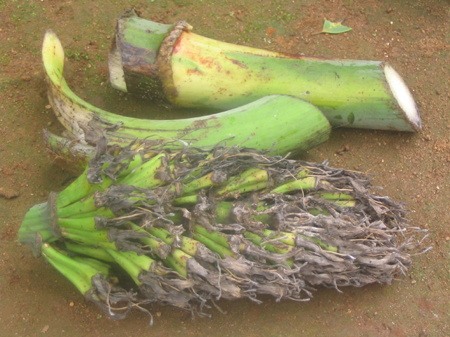 I woke at 10 am and read some more of the Mahabharata (I guess I must have started it the previous night). I'm not sure it really taught me anything other than the basic caste system was already in place by the time the book's events took place (assuming they ever did, of course). A strange sound turned out to be Ajeesh's mother grading peppercorns by shaking them in a flat-ish tray. The bigger corns don't move so much as their shaken: this and gravity concentrate them near the shaker. Ajeesh and his father (Gopalakrishna) loaded a sack of home-grown coffee beans and a sack of the graded pepper into an autorickshaw that had brought some visitors, then Gopalakrishna and the produce were taken to town. Jaya (Ajeesh's youngest sister) had cooked rice noodles and sambal containing jackfruit seeds.