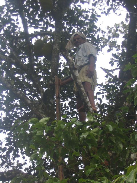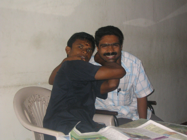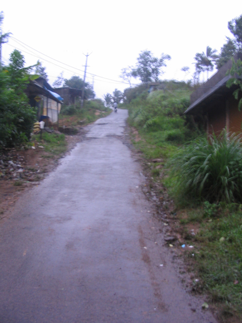 We woke around 6pm and found a nearby chai-stall: breakfast was tea and fried wheat-cakes. Then Ajeesh walked off to visit a relative (like the phfor, they're everywhere) while Anish and I sheltered from rain in the car.