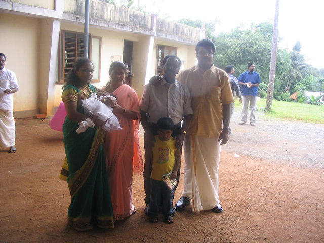 I also recall joining with Radhalaksmiamma in peeling some kapa (tapioca) roots. I then walked to town. On the way, I stopped at the house where Ajeesh and I had stopped to eat with the wedding party last night. I intended to take no more than five minutes to congratulate the happy couple (because they hadn't been at the house when we were there last night) and then go on to town. However, I was embroiled in conversation and it took over 20 minutes to extricate myself. The household was muslim and someone asked me my religion. I replied truthfully that I believed in no god. I wonder if it would have been too much of a cop-out to say 'my religion is people and animals and anything that lives'.