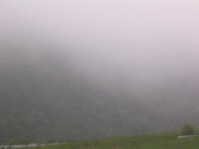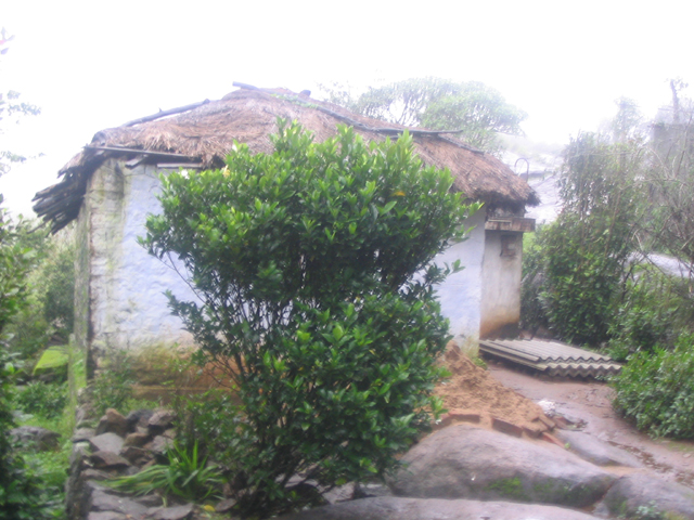 By the way, I love the german for 'to (go for a) walk': spazieren. It makes me think of 'to (seek) space', 'to space out' or even 'to spazz out'. About 2 km from the house, having slipped and inched my way over a large expanse of bare and wet rock containing enough cracks to support a large community of tiny frogs, I got to a nearly impassable brush-covered 'tor' that's near the top of the mountain. At the very top of this tor is another expanse of wet, bare rock over which the wind howls and the fog scuds. I crawled to the top of this, fearing that the wind would catch me, my lunghi or my umbrella* and take us flying to Tamil Nadu. I finally stood up and shouted at the elements to do their worst. Of course, they ignored me.