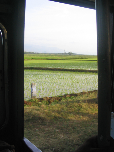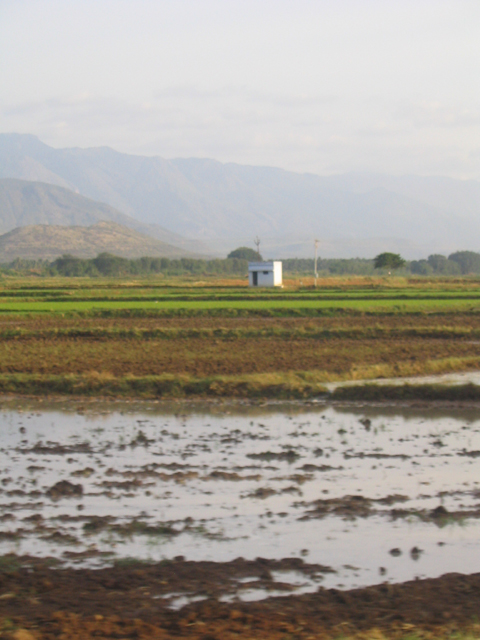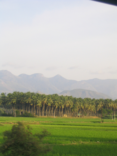 Along the way there were many pictures of Jayalalitaa and MGR. There were also many fires - apparently makeshift brick kilns. There were many, many rice fields. Above them, the Western Ghats towered: a seemingly impossible barrier to the magic land of Kerala.