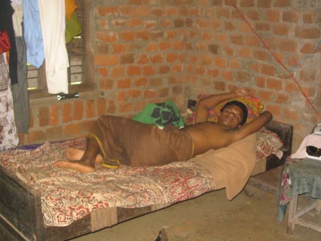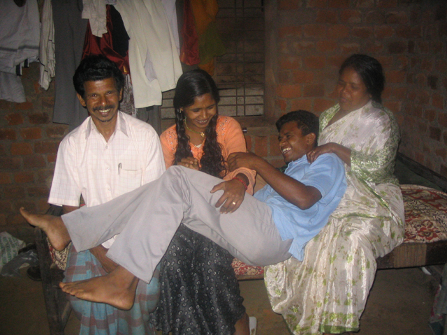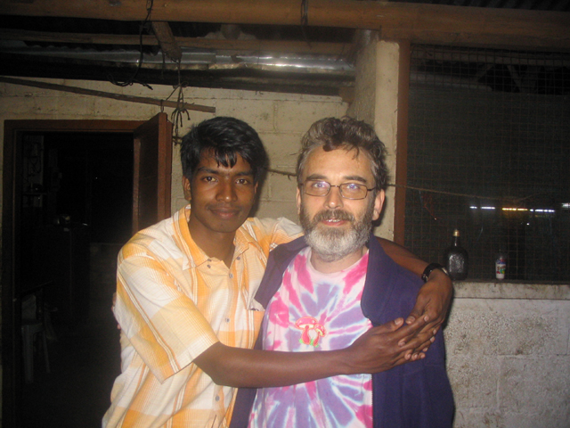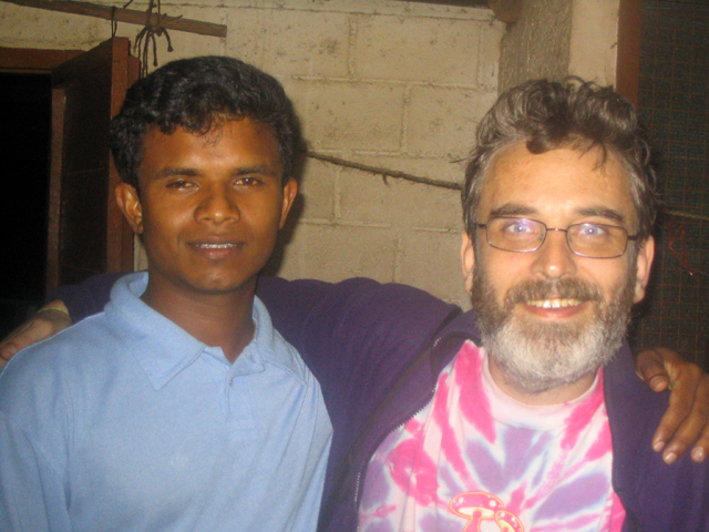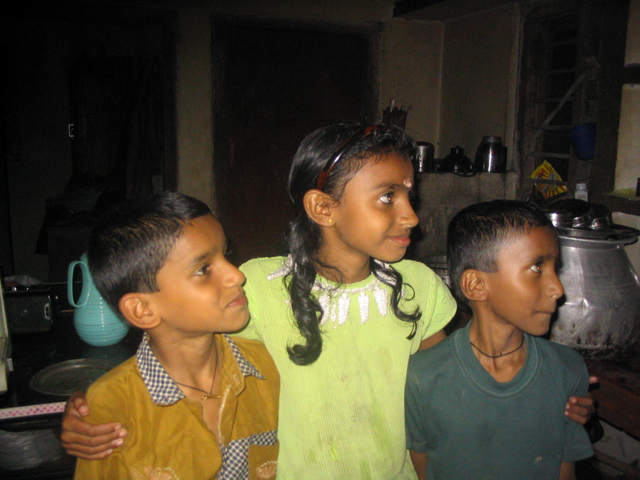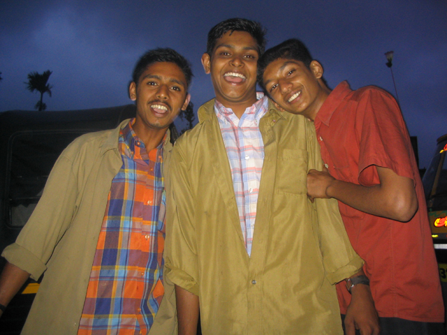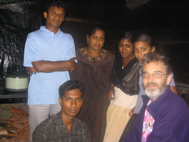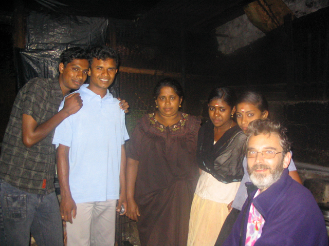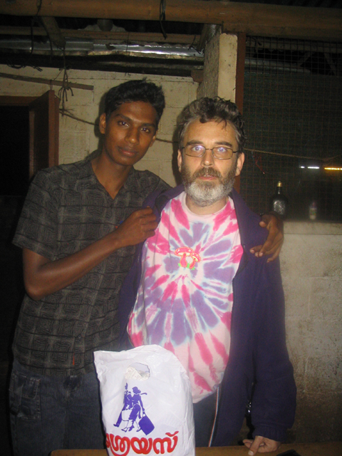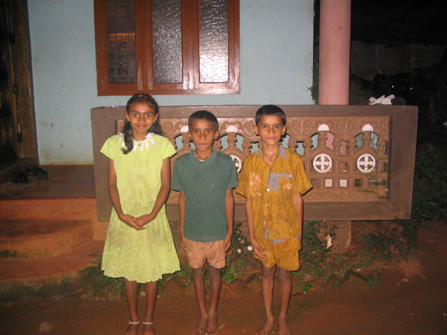 We then went on to say goodbye to Ajitha and Santosh and their children (Sandra [with whom I'm well smitten] and Kanan). Sandra and Kanan were fast asleep - by now it was 10pm. Again, I'll carry images of them with me in my heart for a long time The way to their house is across a river: there's a bridge made of three parallel and loosely connected bamboos. It's great for testing and increasing your sobriety!