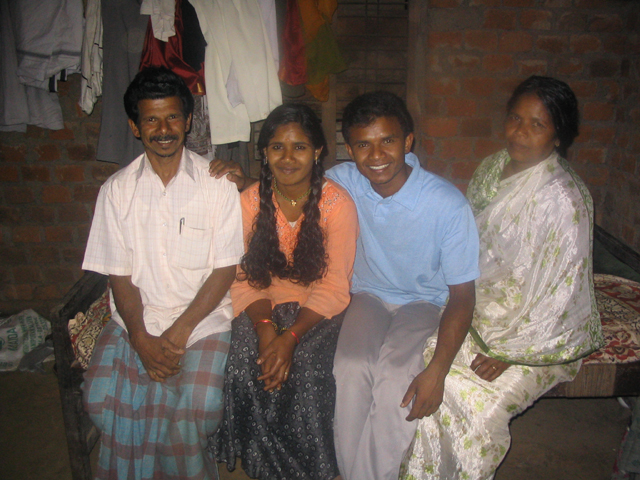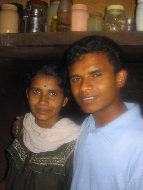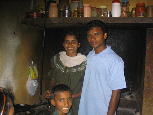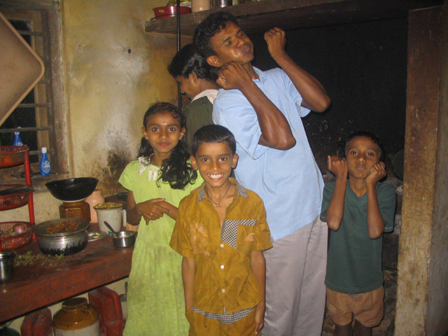 Then we went on to visit Ajeesh's middle sister (Ambali) and her husband and daughter (Rajiv and Pavitra). They lived about 1 km from a metalled road, along a track that was more reminiscent of a dried-up stream-bed. It sorely tested suspension on both the car and me. Ambali, Rajiv and Pavitra lived in a two-room house in 2 acres of cardamom-producing land the family bought for them last year. The house was about 15 km from Nedumkandam, so I guess it's a rare occasion when all of Gopalakrishna and Radhalakshmi's children and grandchildren are together.