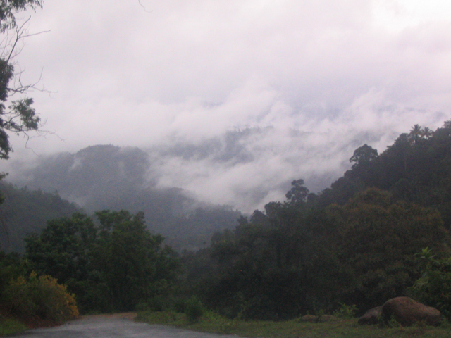 My alarm went off at 3 am - as planned! I dragged clothes on and lurched my belongings onto my back, then goggled as Ajeesh went out into the cold, rainy weather to have a cold shower. Normally they seem not to affect him (well, they appear to clean him but you know what I mean) but after this one he was shivering. I said final goodbyes to Jaya, Gopalakrishna and Radhalakshmi and walked in the gentle drizzle down to the car. We drove to town and stopped at a printer to check on progress in printing Jaya's wedding invitations. While we were there, two auto drivers came into the printers office and spoke with Ajeesh. He softly asked me 'shall we go' but when I got to the car, it turned out he had meant 'let's go NOW!' Another auto had backed into his car door, dented it, then sped off so the driver could avoid Ajeesh's wrath.
