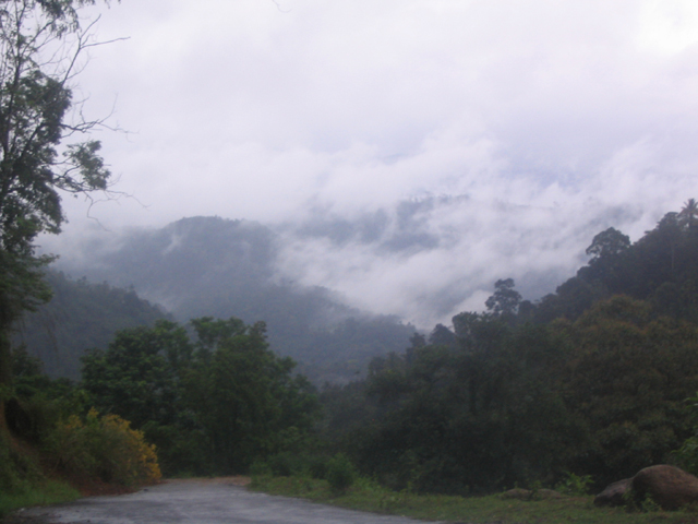 Ajeesh sped us in the direction of Udumbanchola, throwing the car around curves and driving with what felt like utter abandon - he really wanted to catch this git: after all, he'd just spent a lot of money having his car serviced. At Udumbanchola he asked people waiting at a bus stand if they'd seen an auto pass by. They hadn't, so he thought it must have turned off the road before then. Somehow he tracked down the auto's owners. I knew that if they didn't sort out their recalcitrant driver then they'd have to face a very pissed-off Ajeesh. I'm sure he'd have settled for an apology and a token few rupees, at least to start with: this door has already been bashed by a jeep and I think the jeep's driver has given him enough to pay for the repair. The new knock hardly increases the repair task, in my ignorant opinion. However, because the bugger buggered off, Ajeesh is very upset. I think this is the second time someone has deliberately damaged his car and then refused to compensate him.