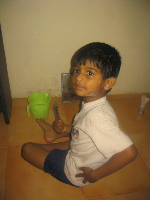 I didn't quite succeed in creeping up on Dhanush, Bobby and Ravi's 4-year-old son. He saw me at the last moment so I grabbed him and carried him to the house. He was still as delightfully hyperactive as I had remembered.