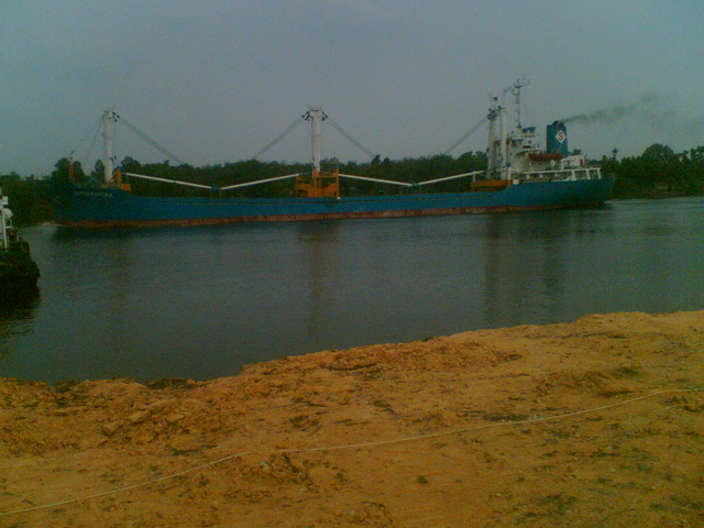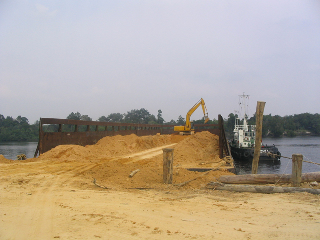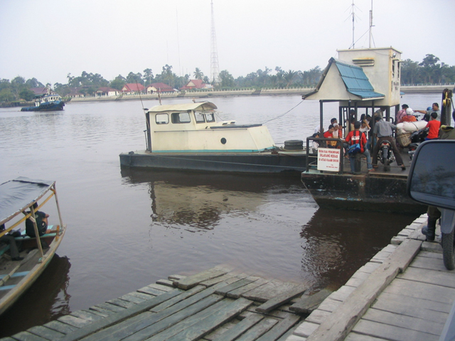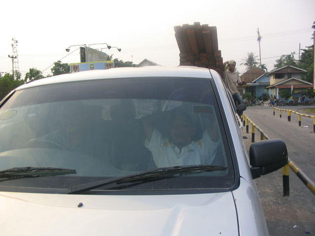 I asked Nova why the company couldn't dig a further canal to sungai Siak and save time by not having to transfer the logs from barges to lorries and not have to deal with the attendant logistics. He told me that this would entail crossing the route of a gas/oil pipeline (you can see it in one of the movies on this page) and so it couldn't be done.