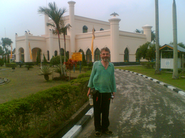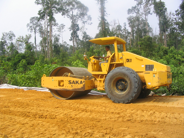 Nova, one of his colleagues and I left the kampung to go to a place near Kerinci where Nova was overseeing the construction of a road through the forest to a new logging site - I think he oversees that too. The road construction is interesting: once the route has been cleared, a layer of tough fabric (geotextile?) is laid down. The sand is bulldozed over it to make a flat surface into which coarse gravel is flattened. It makes roads good enough for the massive logging trucks and other plant. I understood that Nova was also considering moving his family to live here - a new mosque was under construction and Nova, a devout Muslim, wanted his daughter (Nurul) to have a good place to learn and practice her religion nearby. Also, Nurul and her mother (Bertin) lived in Batu Sangkar, about 3 or 4 hours away and Nova missed his wife and child very much.
