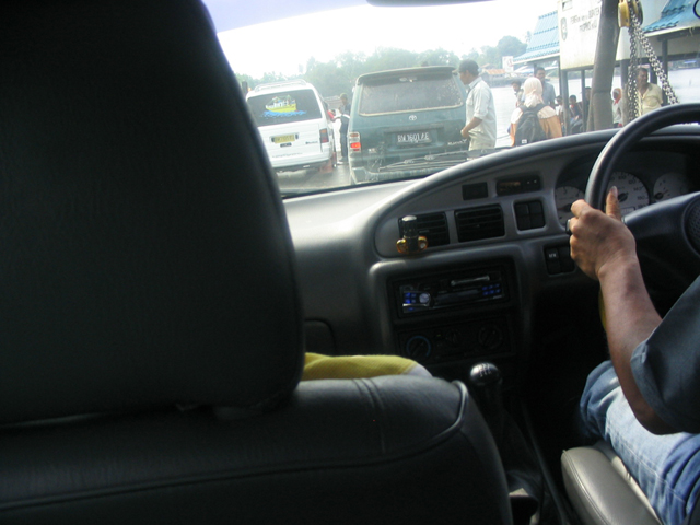I recall we drive to Kerinci, crossed the sungai Siak on a wee put-put car-ferry and then drove on, deeper into the jungle to see the new road and logging site under construction. Nova told me how his brother-in-law had said he was Greenpeace's enemy and I began to see why. Although Nova's company reported and prevented as much as possible illegal logging in its areas, and security guards at every kampung and workplace checked all vehicles coming in and going out for contraband, the scale of the clearances was overpowering. I think they cleared government-alloted areas of native forest (by felling and burning) and then planted fast-growing trees which would use the ash as fertiliser. I don't know whether the jungle would be allowed to return after that.