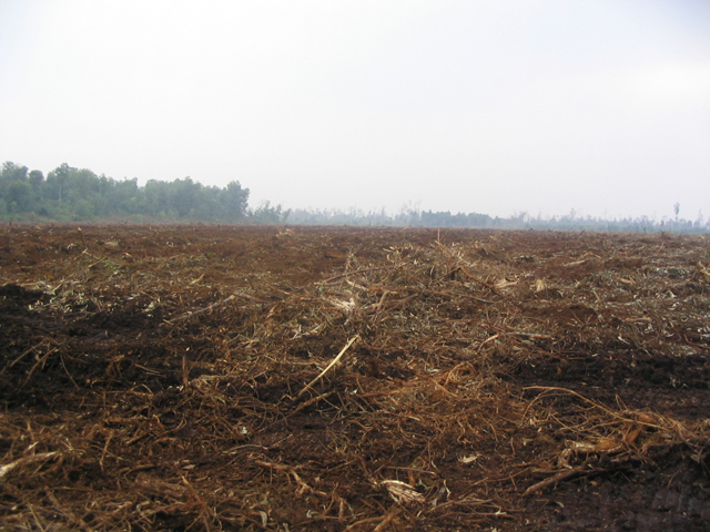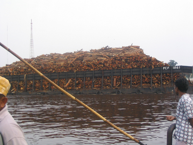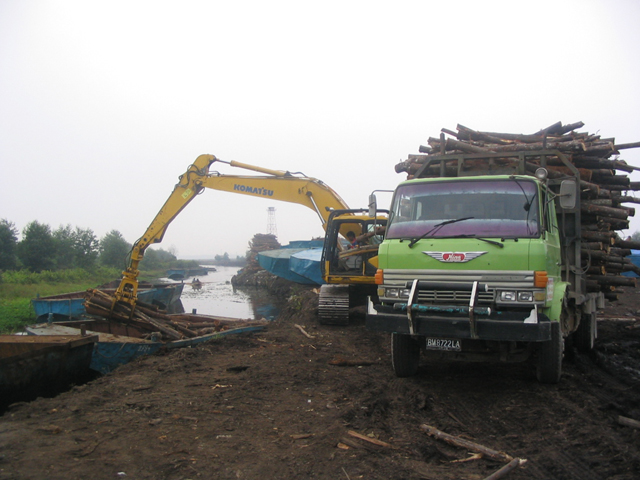 After felling, logs are transported by canal and lorry towards sungai Siak, where the are then sent on their way for processing.