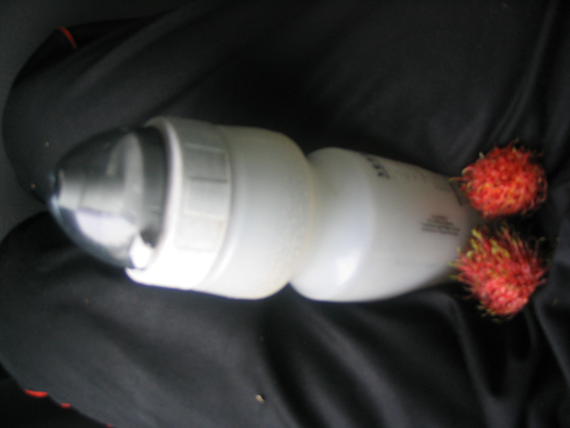 On the way back to the kampung, Nova bought some rambutan. These are hard-shelled fruit with juicy/waxy succulent interiors - the taste was a cross between a smooth orange and a lychee - and big stones. Of course Random Bozo couldn't resist play-acting - see the last-but-one photo on this page!