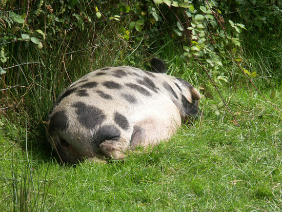 Yet again, we overshot our turn and got as far north as 014517 before seeing a sign telling us we were re-entering St Austell. Oops! So back south along the B3273 to eventually find the north boundary of London Apprentice and our turn west. Our problem now was not inadequate mapping but inadequate legs. We trundled and trudged up 160 metres (in a little under a mile - so an average slope of 10%) past Carnmoggas caravan site, through Lower Sticker and saw the sign to the place of Cheloniae.