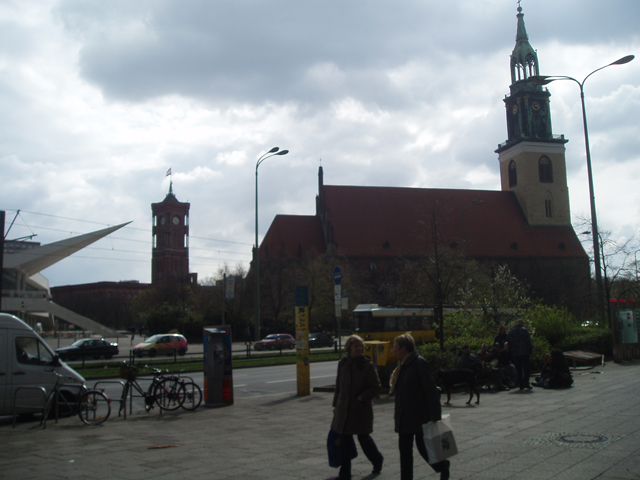 Walked (along) Karl-Liebknecht-straße to Alexanderplatz, (then along) karl-Marx-Allee. International Kino no good and dog-shit (incident).