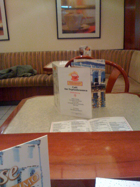 Tea and Hiroshima and mini-Berliners at cafe Segafredo in Alexanderplatz Bahnhof.