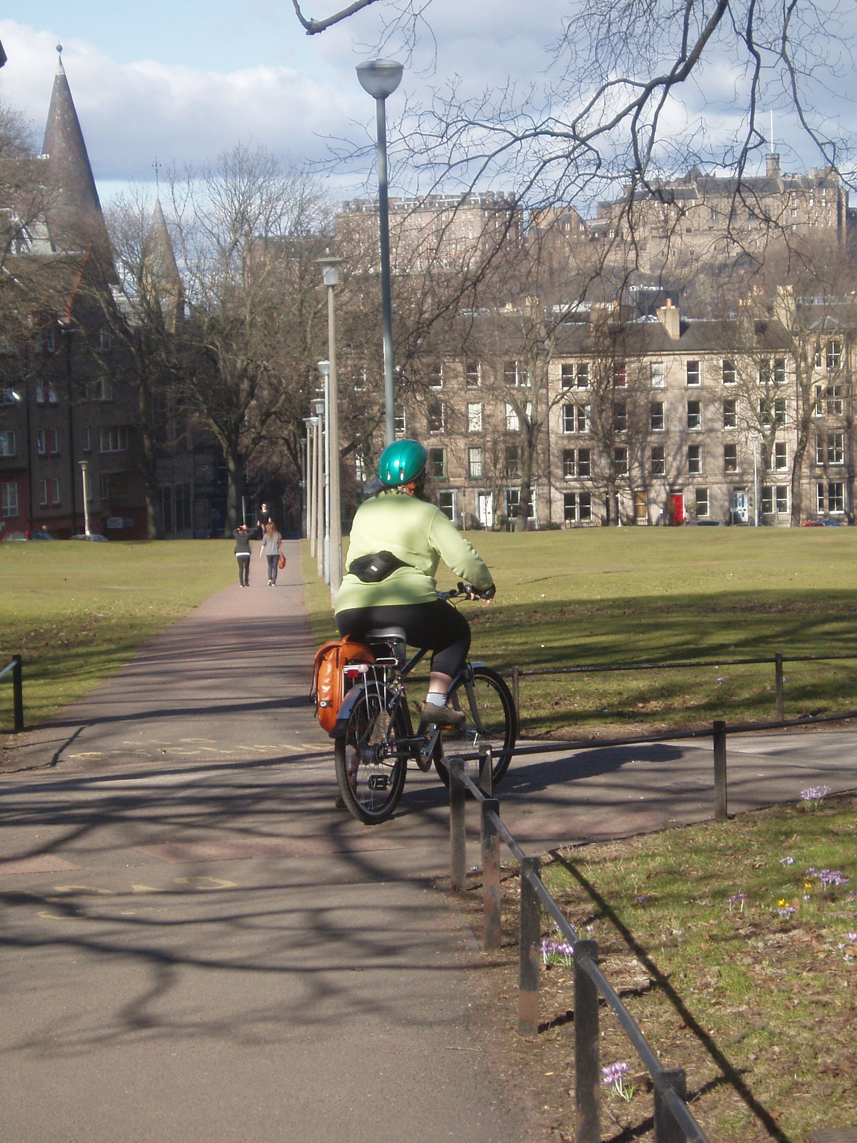 We cycled from the Edinburgh Bicycle Co-op, via the Innocent Railway to Edinburgh's eastern edge then mostly via cycle-paths to Musselburgh. Our return journey was by road to Seafield and then cycle-path from Leith to Servants' Quarters. Each time we return to SQ via the Water of Leith path, I attempt Bells Brae. It's hard going but I intend to be able to get up it without standing on the pedals some day.